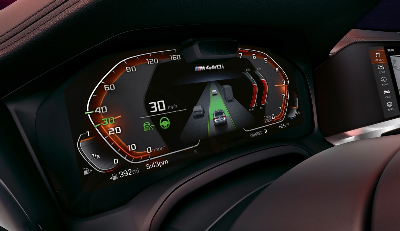 | 2. Integrated Displays - Live Cockpit Professional. | Experience ultimate control with available BMW Live Cockpit Professional. The driver-focused cockpit includes a Digital Instrument Cluster and Central Information Display with touchscreen capabilities for music, navigation, and more. | |